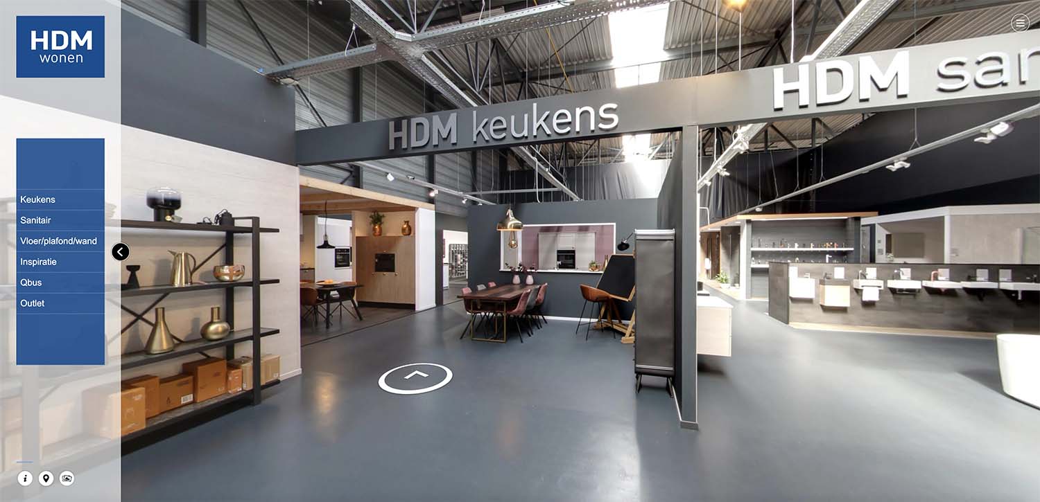Met een navigatiemenu navigeer je makkelijk door de hele virtuele tour. Dit is zeker aan te raden bij de wat grotere virtuele touren. Op deze manier maak je de virtuele tour makkelijk toegankelijk en heel gebruiksvriendelijk voor de gebruiker.